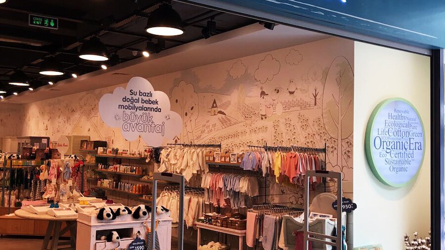 Design Project for Organicera, one of the leading organic baby clothing companies of Turkey. The style of the design for the store in Uniq shopping mall reflects the company’s ideals. Teos succesfuly cooperated with a graphic design group for this project.